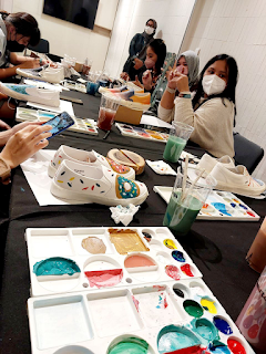 Saya ikutan workshop ini tanpa terbayang akan ngapain, yang saya tahu, kami akan melukis pada sepatu kanvas. Walaupun saya gak bisa gak bisa melukis, gak kebayang juga akan melukis apa, tapi rasanya workshop ini akan seruuuu. Apalagi membayangkan kalau saya memakai sepatu hasil karya yang saya warnai sendiri.